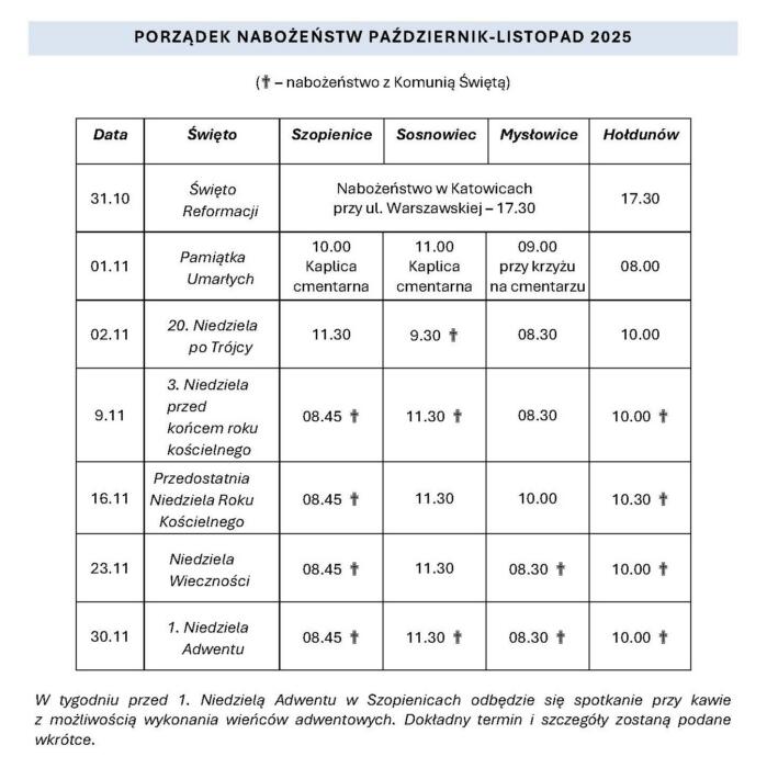 1 listopada Kościół Ewangelicko-Augsburski obchodzi dwa święta: Pamiątkę Świętych Pańskich oraz Pamiątkę Umarłych.